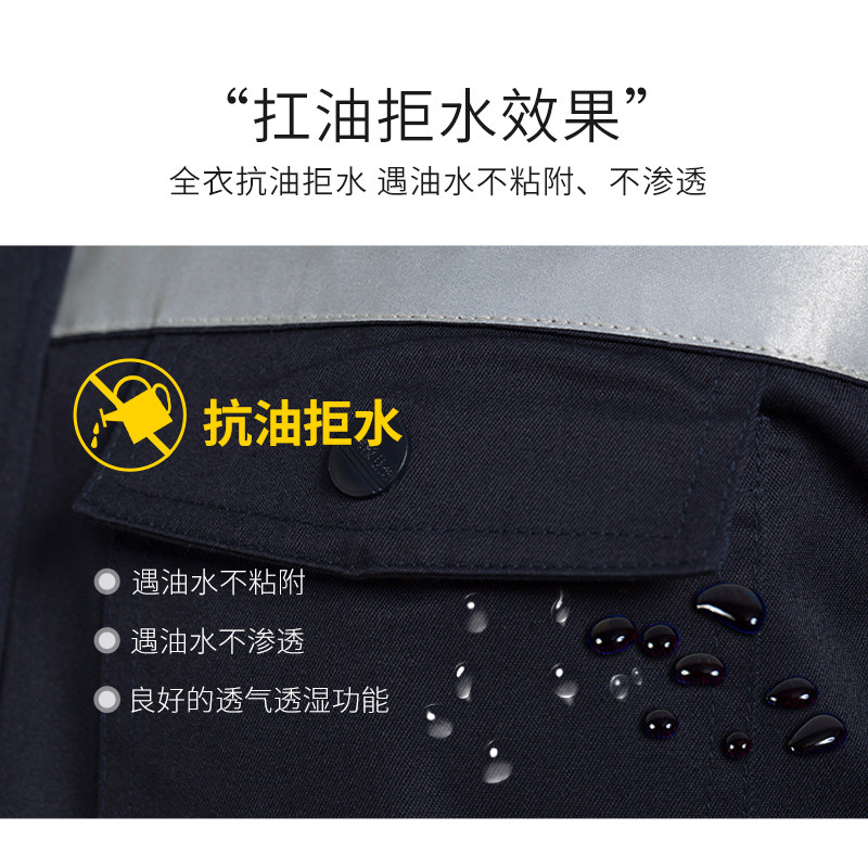 Jiankang anti-oil water-repellent anti-static overalls suit men's spring and autumn reflective chemical factory food factory waterproof labor protection clothing