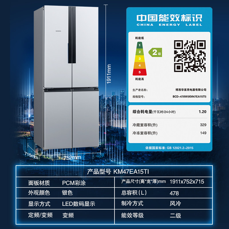 (Siemens 56)478L Cross Door-to-Door Frost-Free Household Large Capacity Refrigerator Frequency Conversion KM47EA15TI