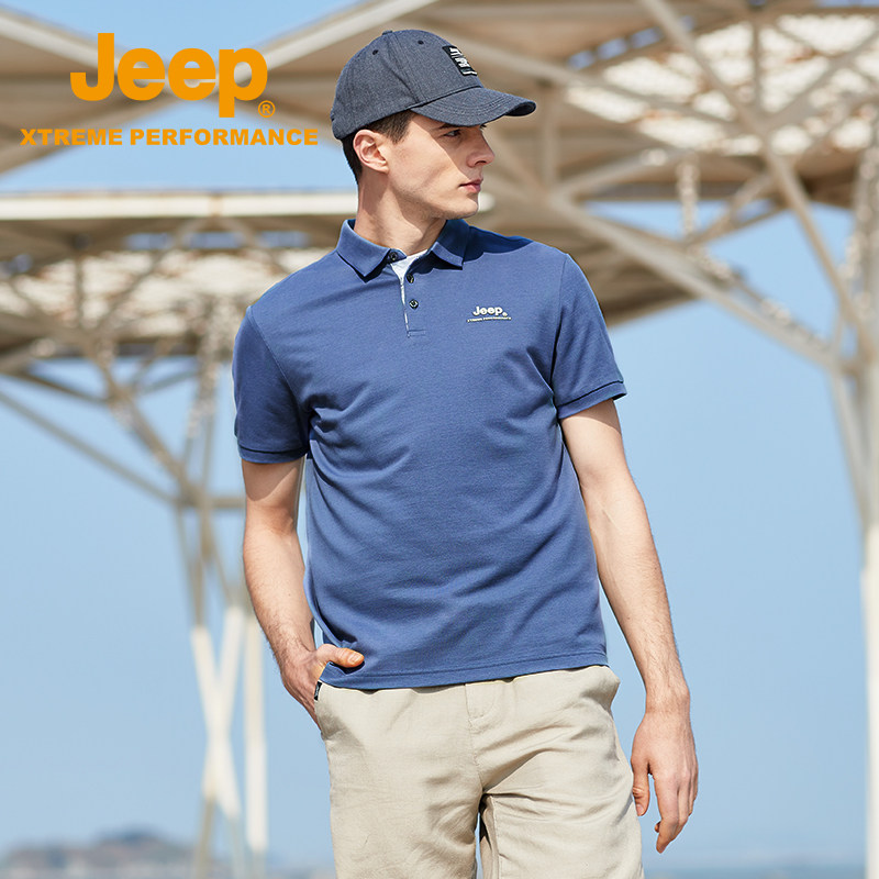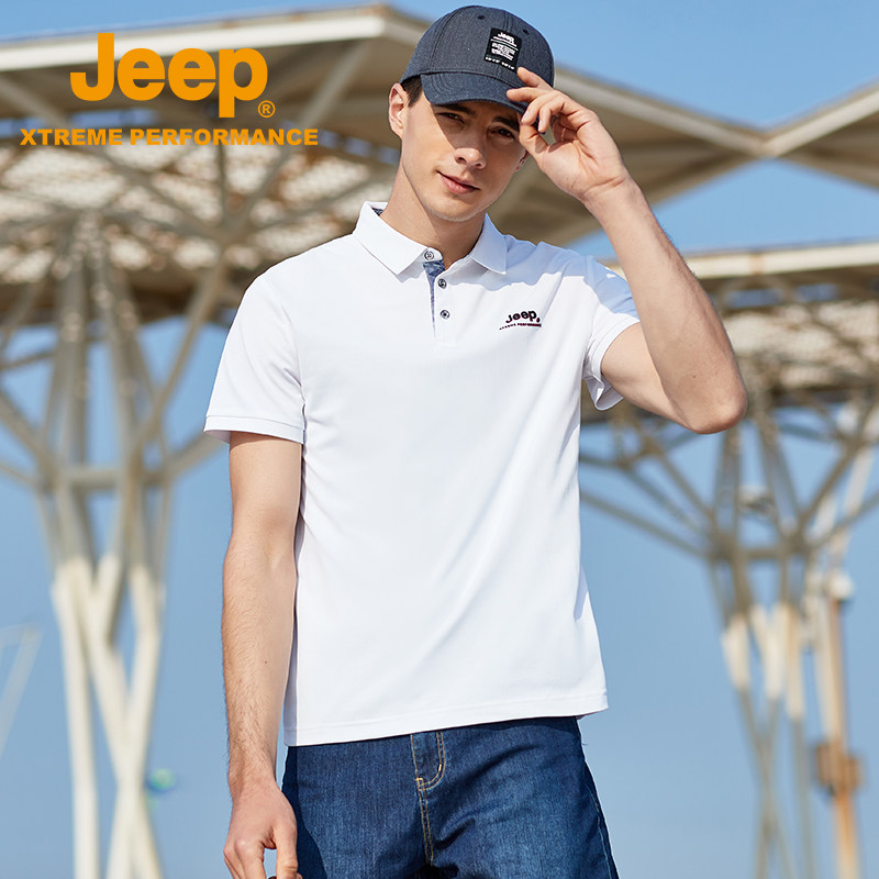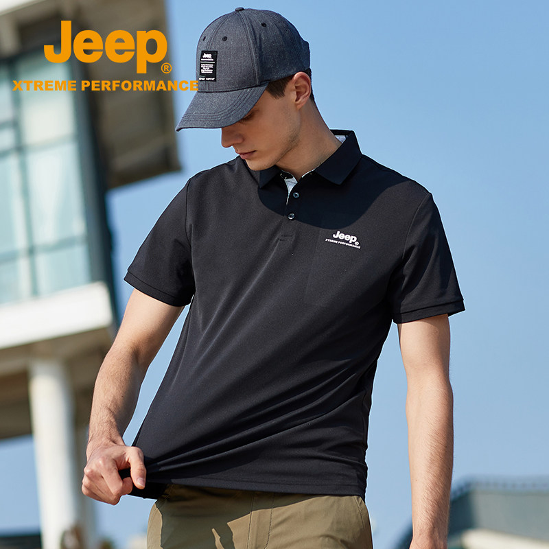 Jeep Guephan Version Casual Men's Clothing Pure Color Flipped Polo Shirt Summer Sports Tennis Shirt Thin short sleeve T-shirt