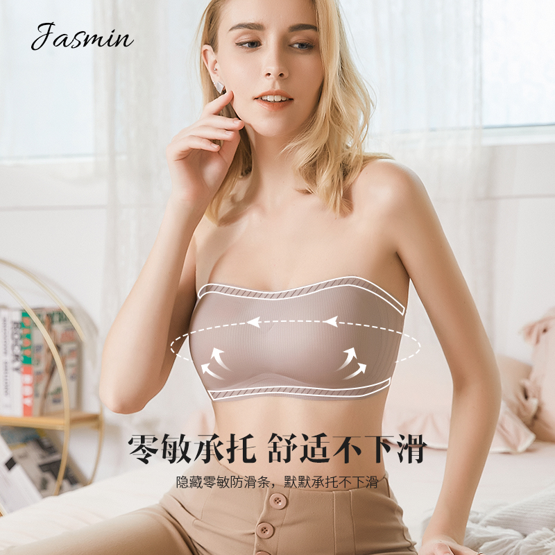 Five princess mother Xiaoxi spring and summer strapless underwear silicone fish bone without steel ring wrapped chest gathered non-slip invisible bra