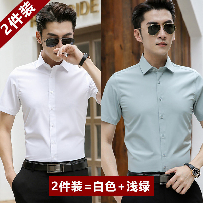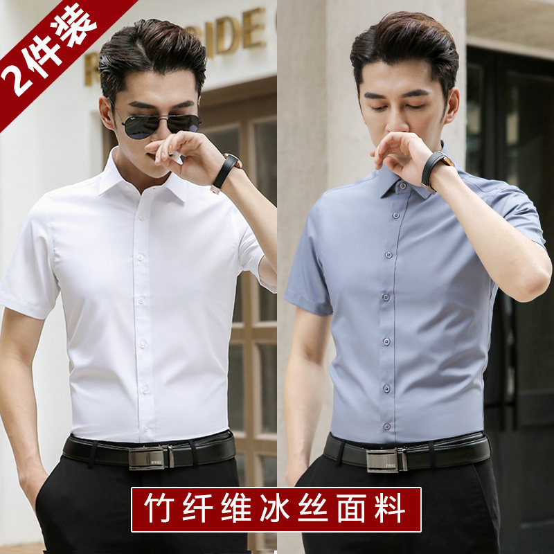 Short Sleeve White Shirt Men Advanced Senses Business Summer Bamboo Fiber Free Ironing Shirt Career Positive Clothing Ice Silk Inch Tide