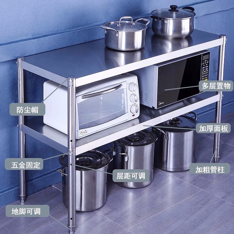 Thickened stainless steel shelf kitchen floor-to-ceiling two-tier microwave oven storage shelf free punching shelf