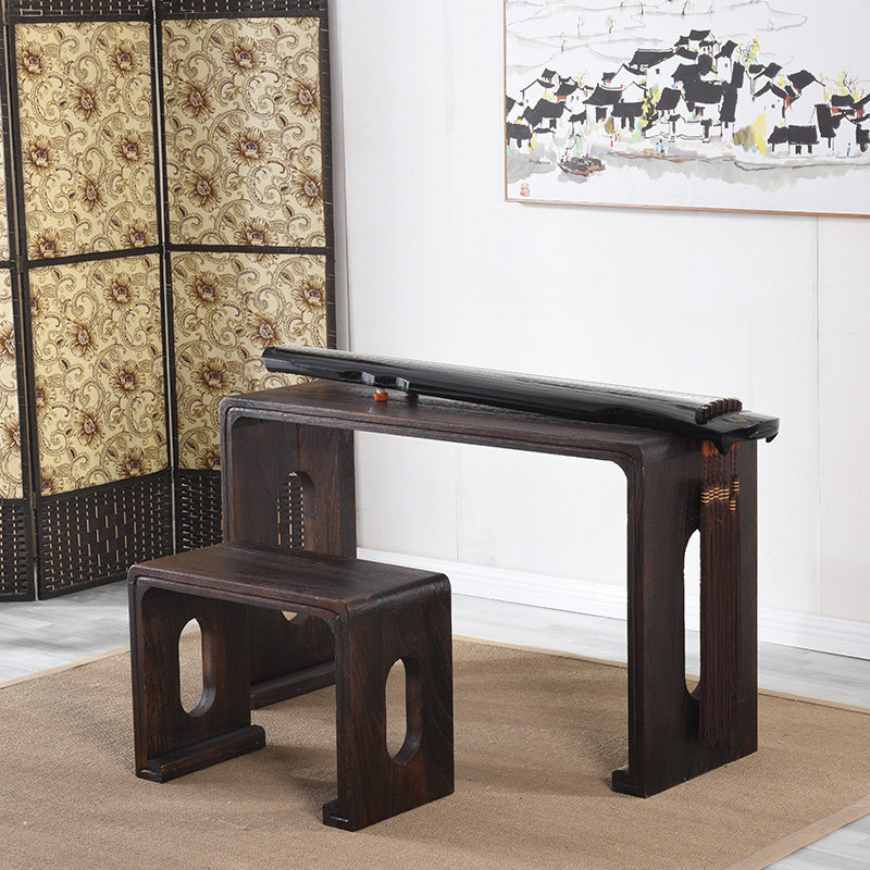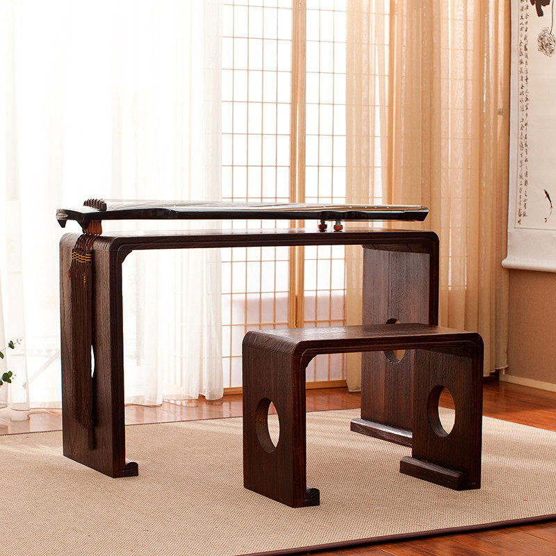 Old paulownia piano table piano bench Chinese learning guqin table calligraphy table burning paulownia solid wood antique piano table resonance guzheng table stool