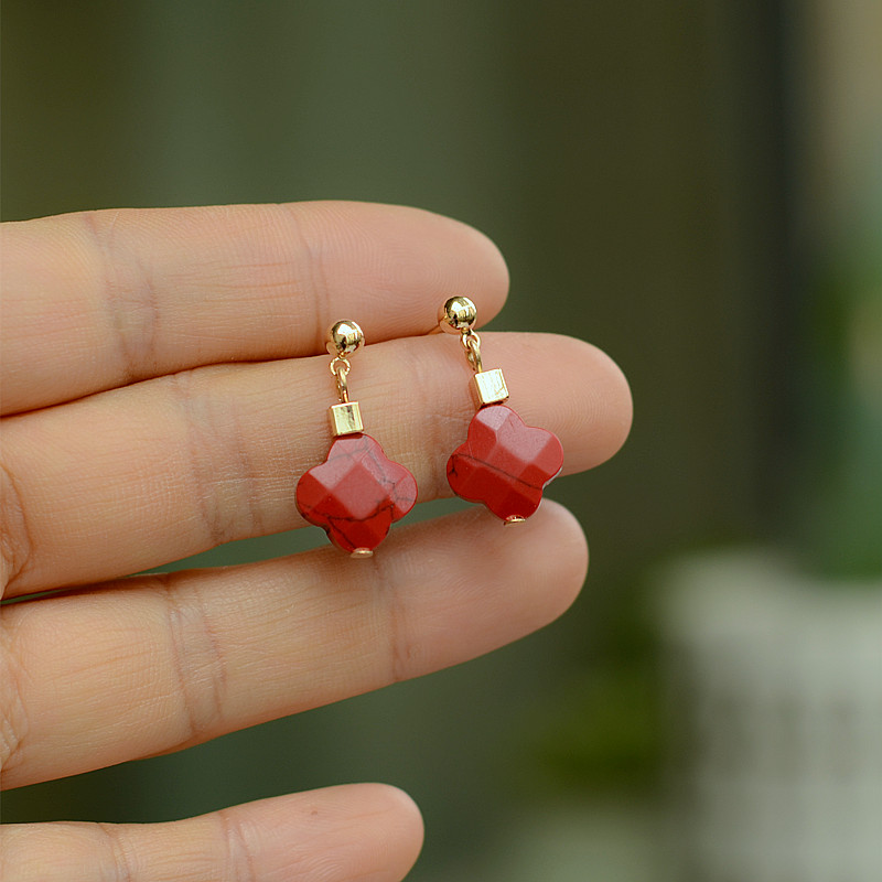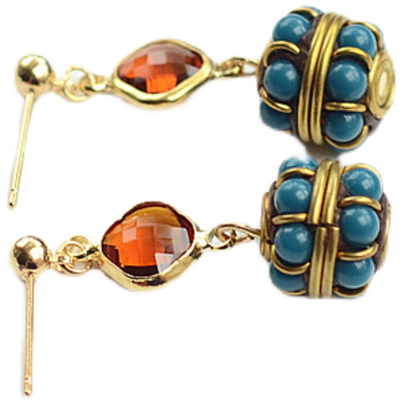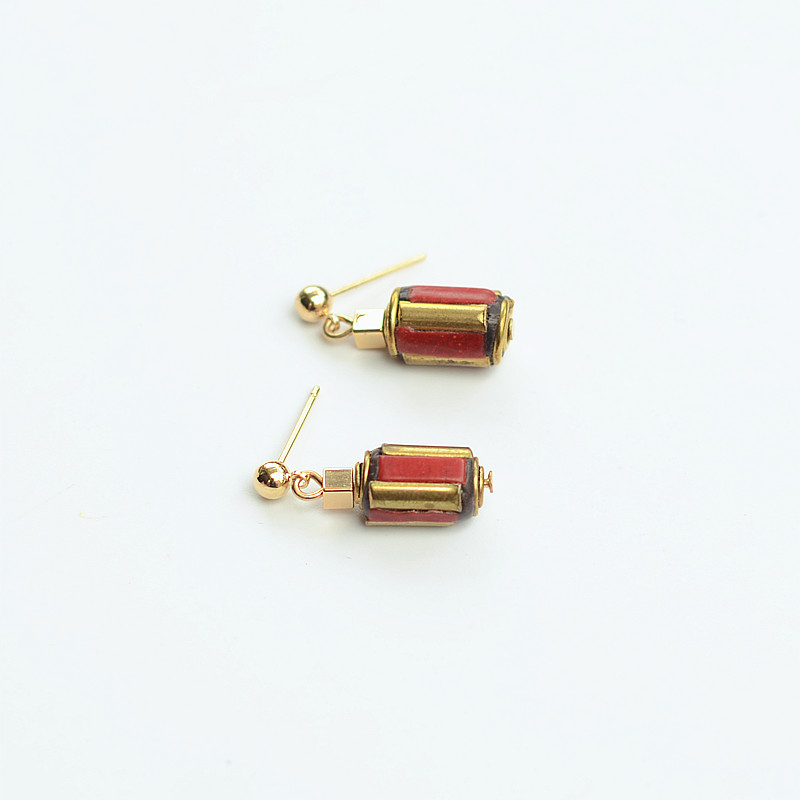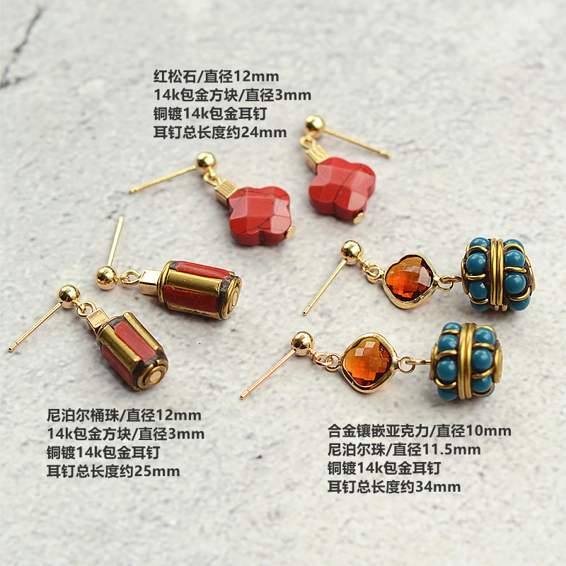 Ethnic style ancient style Nepalese beads red turquoise 520 Valentine's Day gift personality temperament retro earrings ear pin pendants