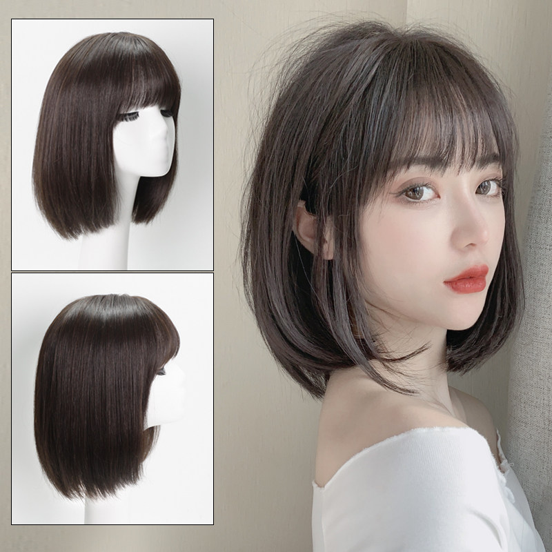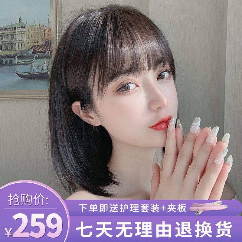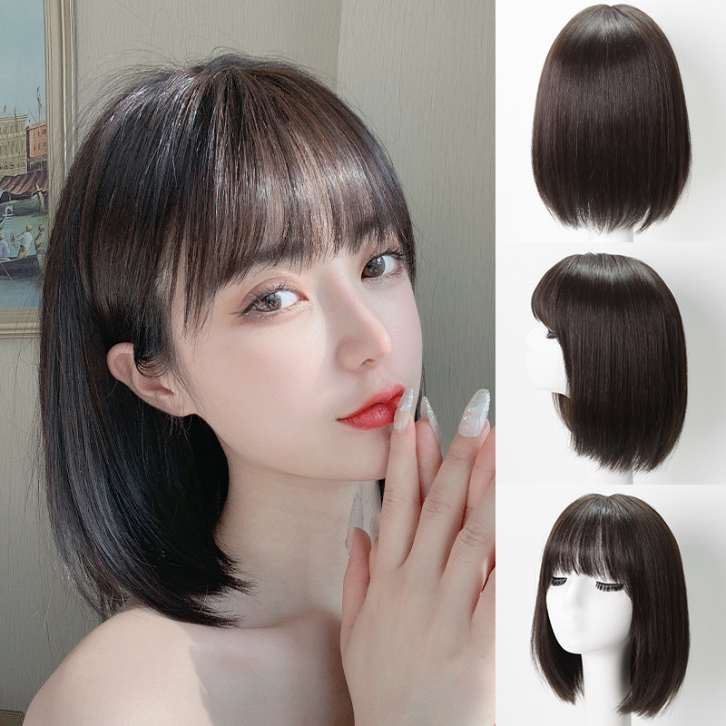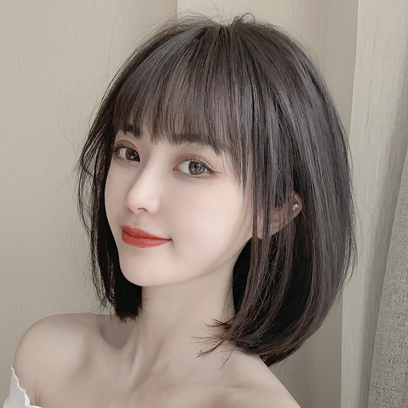 Wig Short hair female real hair bobble natural full head cover Medium long simulation hair set Age reduction styling summer