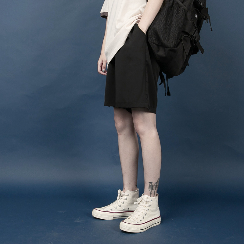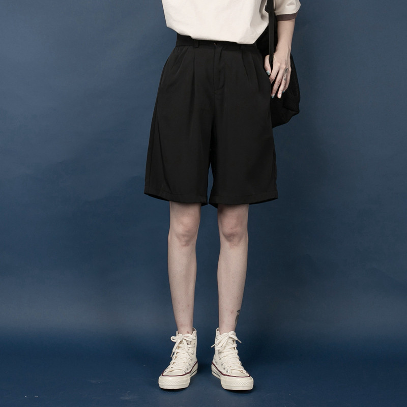 Branches and small buds in the summer of 2022 simple and versatile drape thin suit five-point pants elastic waist black shorts women