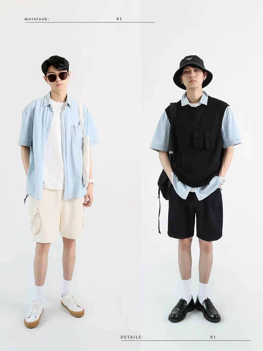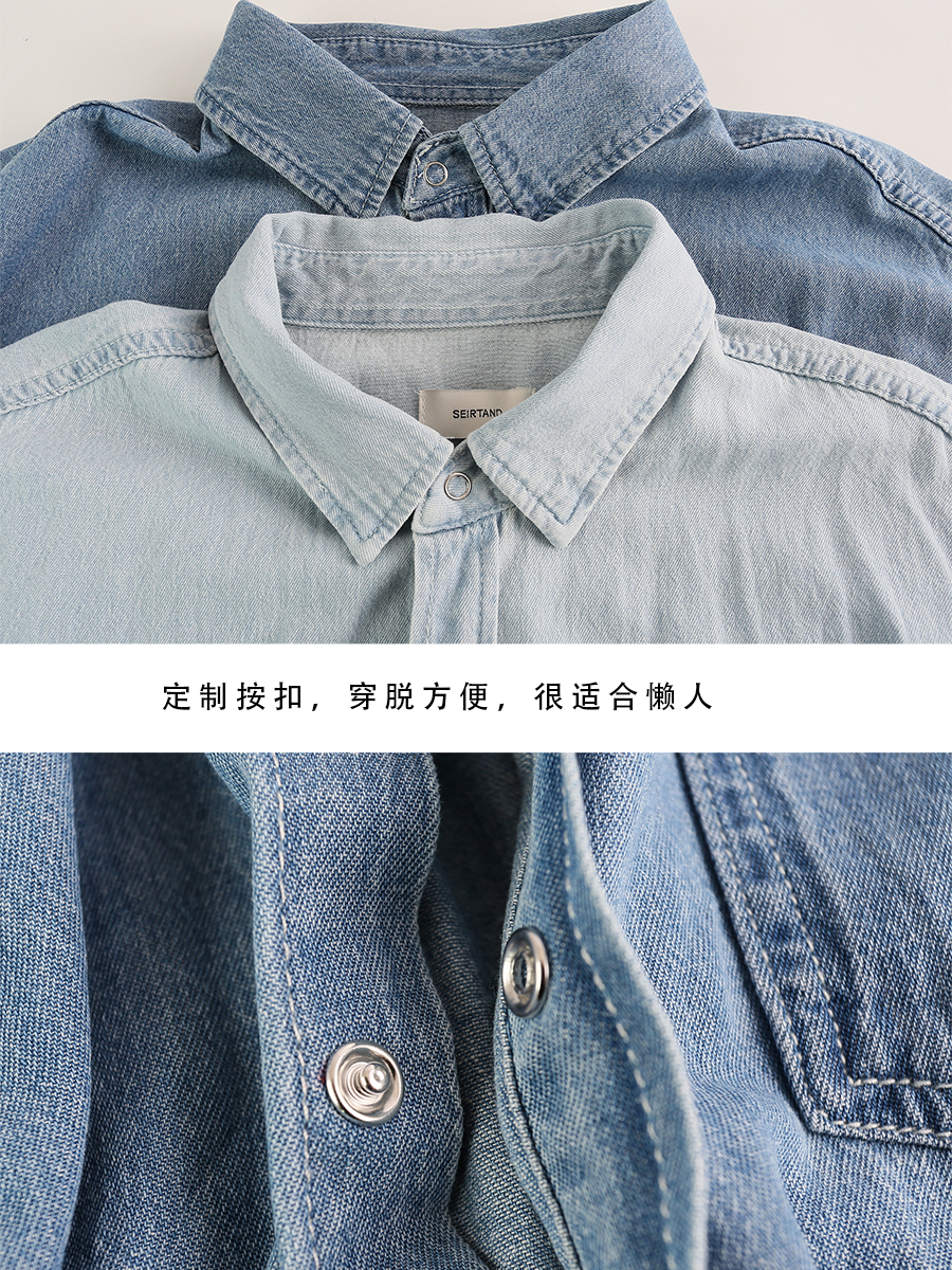 Two fairy light blue shirts Solid color exquisite short-sleeved wash old casual denim loose and thin
