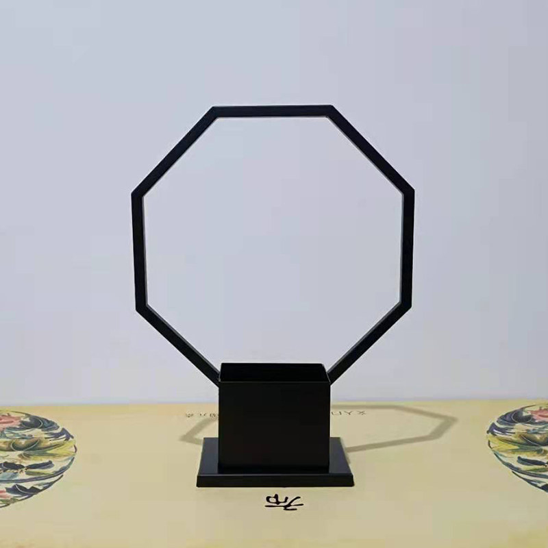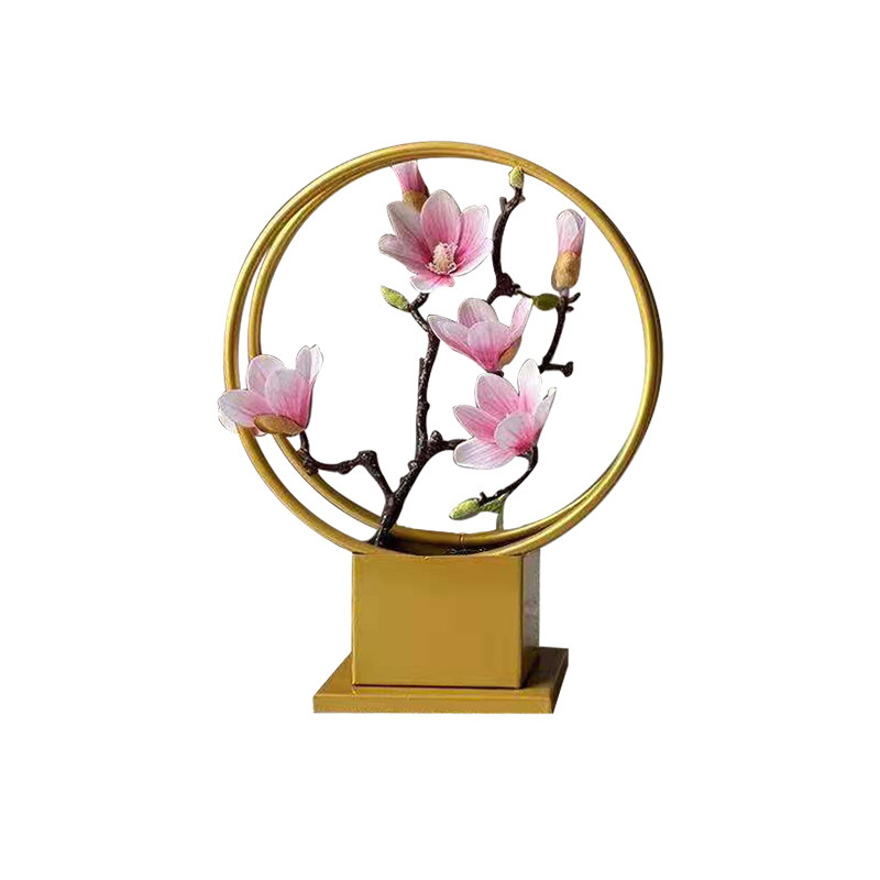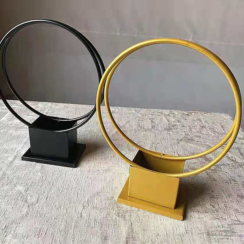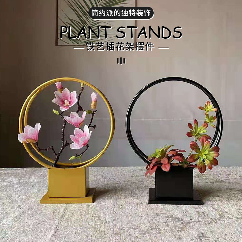 New Chinese-style wrought iron flower stand desktop unique decorative ornaments round black gold minimalist mini creative flower arrangement stand