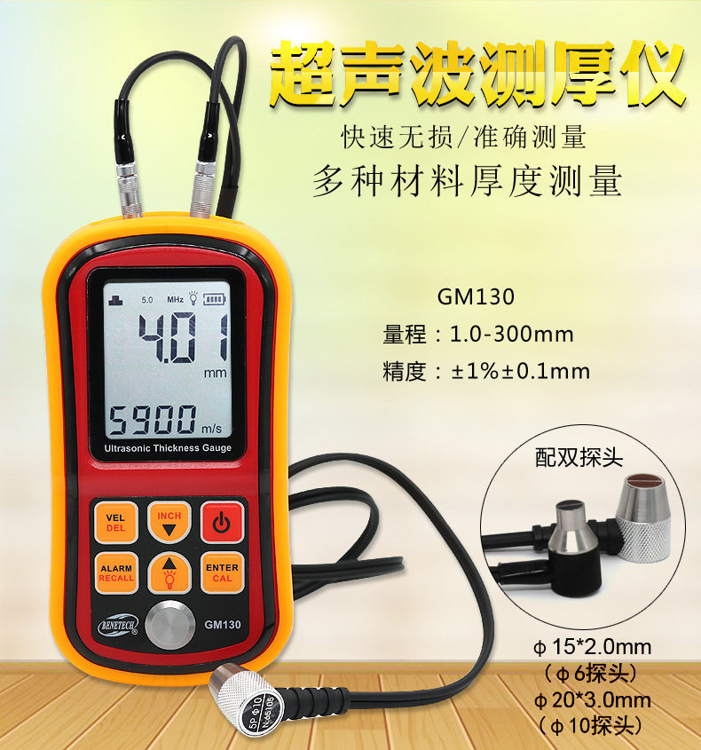 Biaozhi GM130 Ultrasonic Thickness Gauge 0 01mm Resolution 1 0-300mm Glass Metal Steel Thickness Measurement