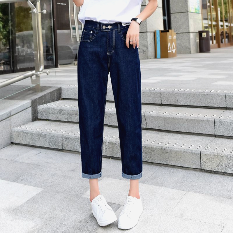 Dark blue thin jeans Women Summer 2022 new fashion Korean version elastic 100 hitch 90% height waist Harlan pants tide