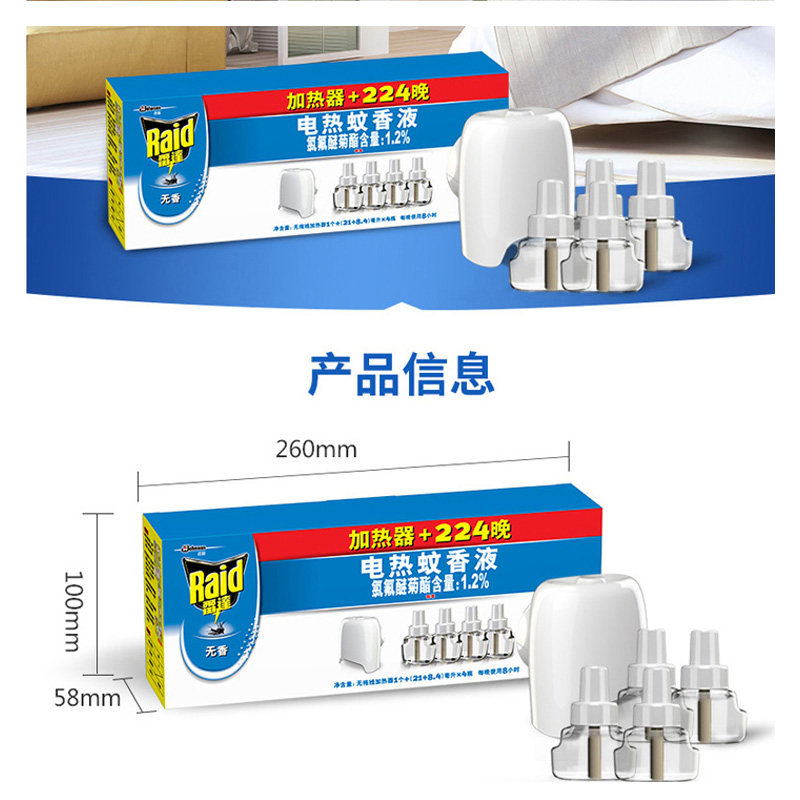 Electric mosquito repellent liquid 4 bottles liquid delivery heater 224 night without fragrance type
