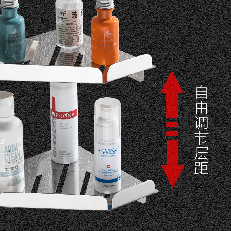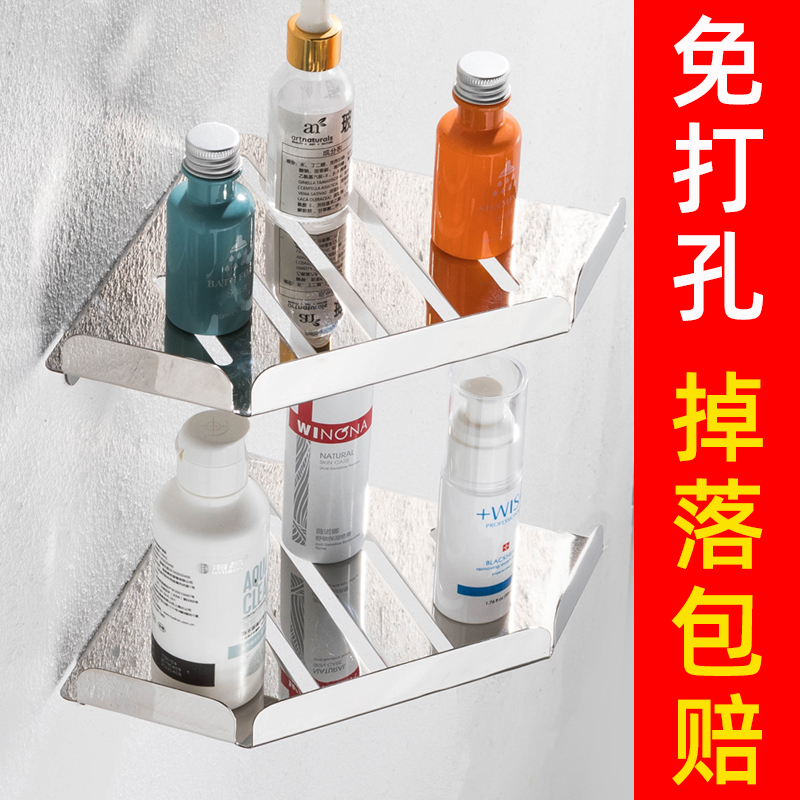 Punch-free 304 stainless steel bathroom triangle rack wall powder room triangle corner rack storage bracket