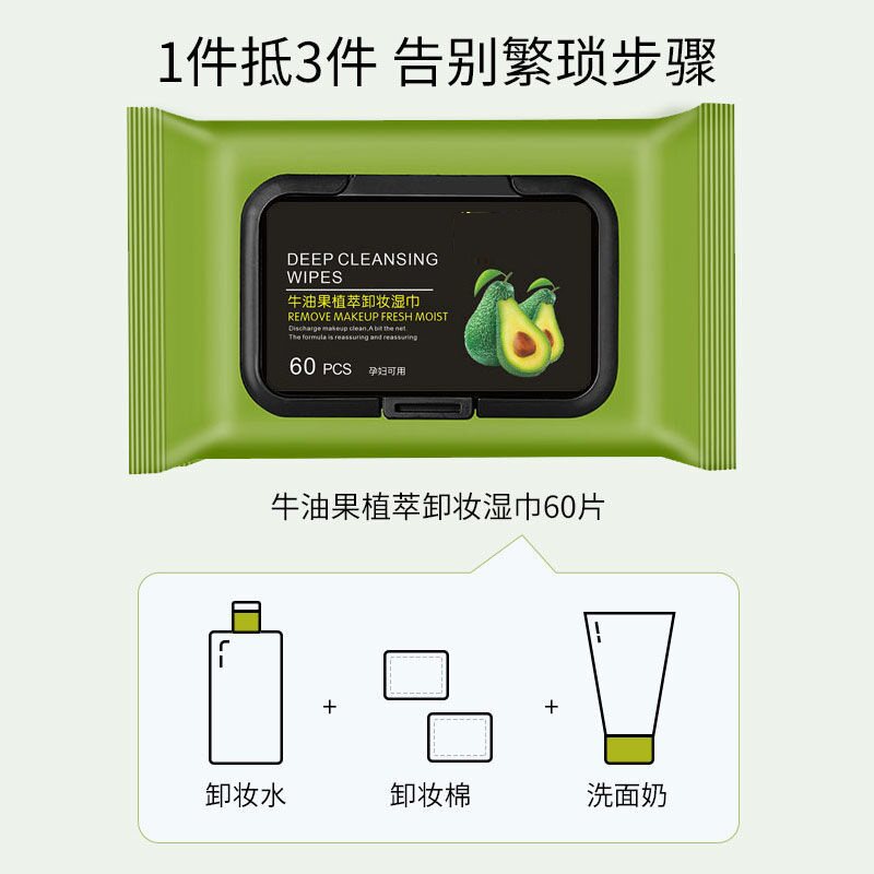 60 slices of butter fruit remove makeup paper towel wet wipes eye face gentle deep cleaning disposable wash-free makeup water handy z