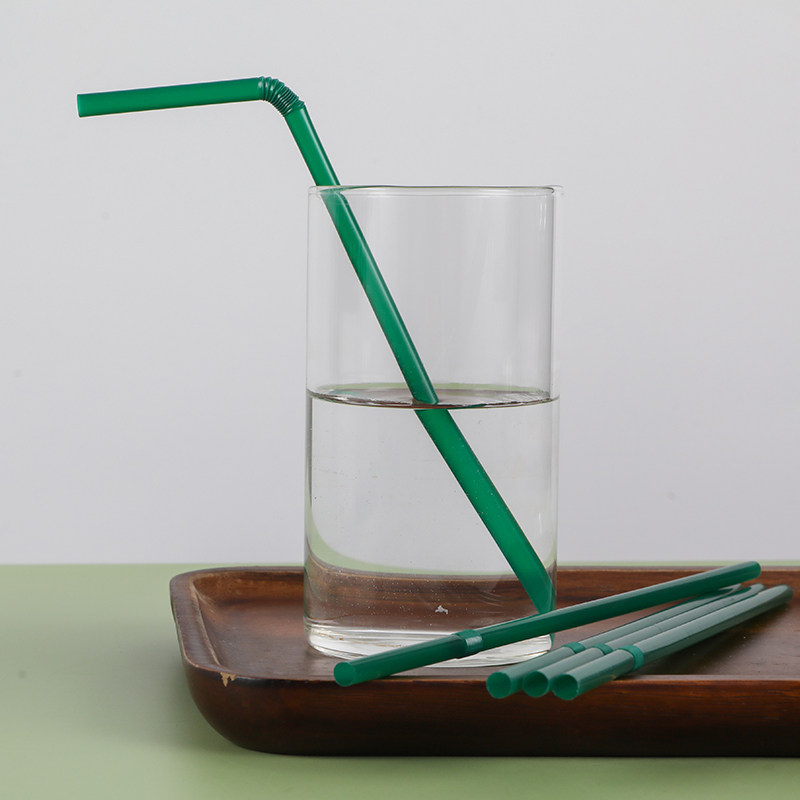 Ink green straw disposable elbow independent packaging bendable plastic straws 100 full 10 packs