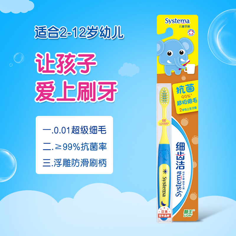 The fine tooth cleaning antibacterial toothbrush is 2-12 years old