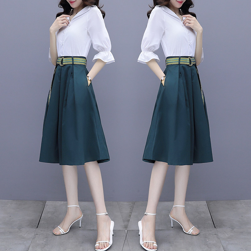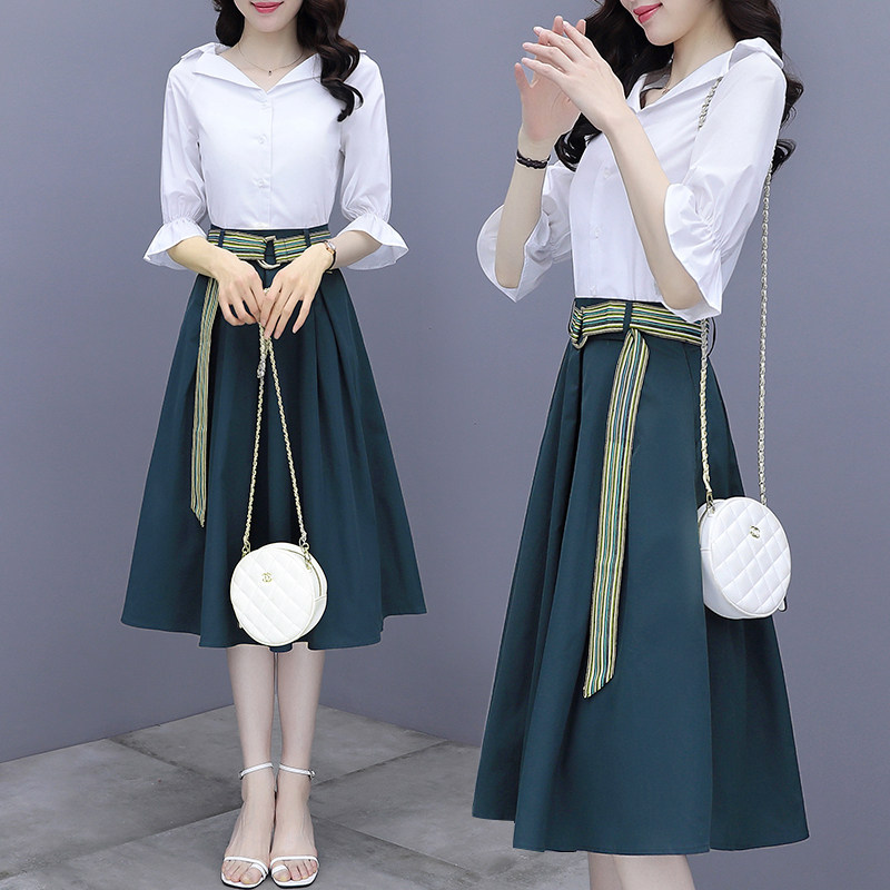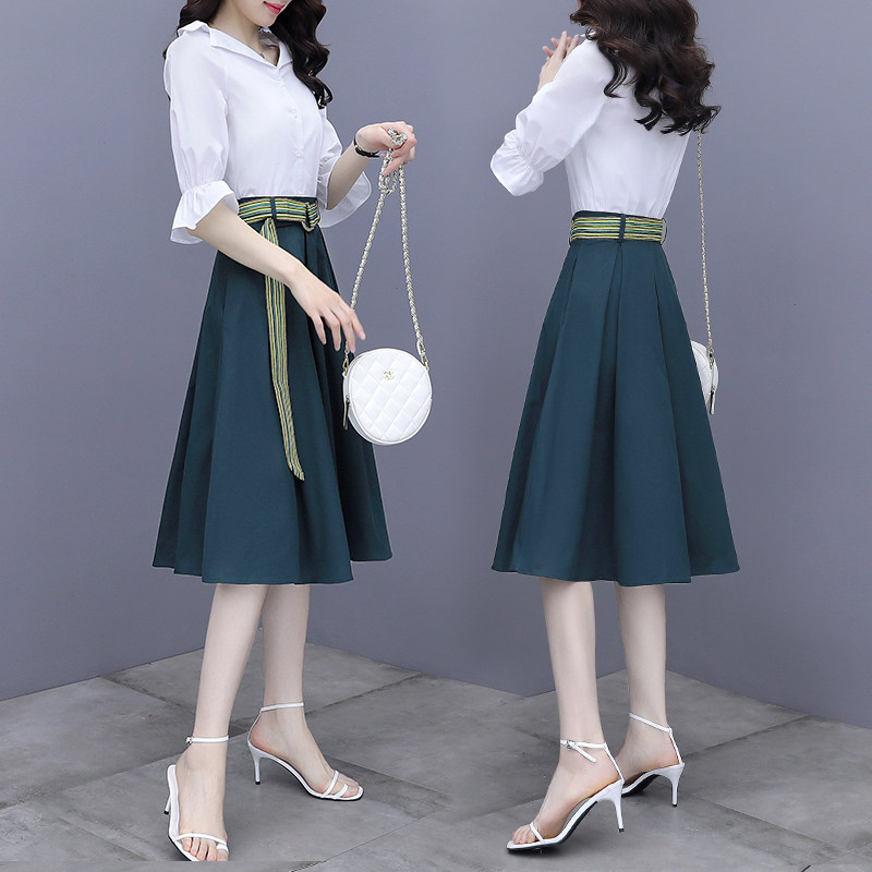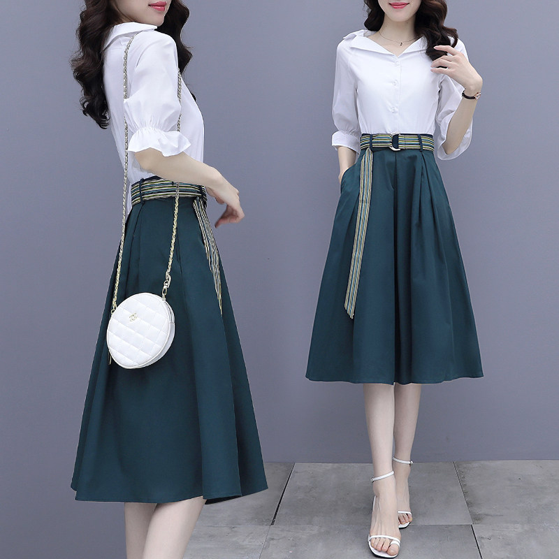 Lightly cooked shirt dress women's spring summer dress 2022 new style waist thin temperament two-piece set a-word skirt