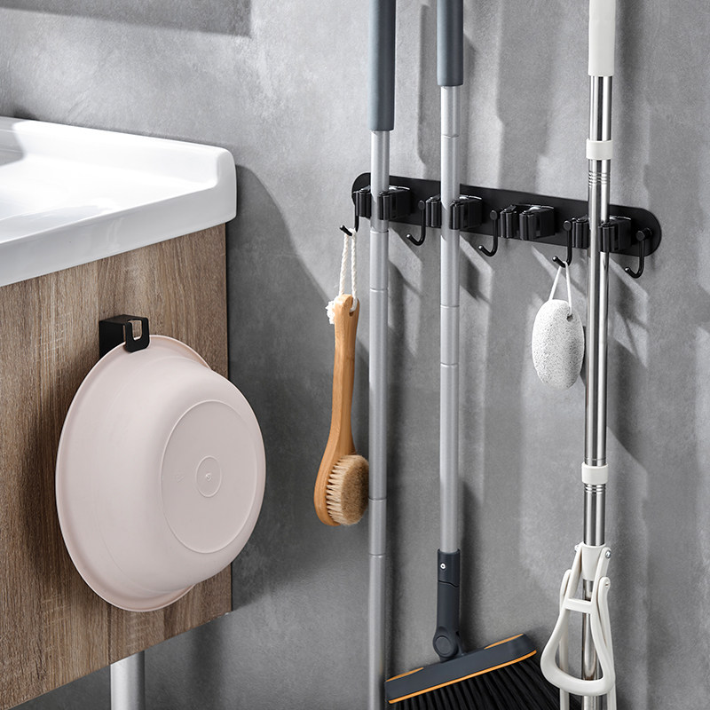 Mop hook Hole-free powder room storage artifact hook Broom pylons Strong adhesive wall-mounted mop clip