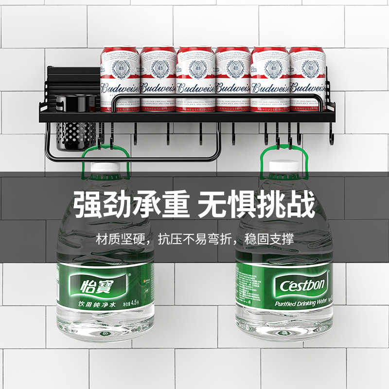 Thick space aluminum kitchen rack wall-mounted non-perforated storage tool holder hardware pendant kitchenware seasoning shelf