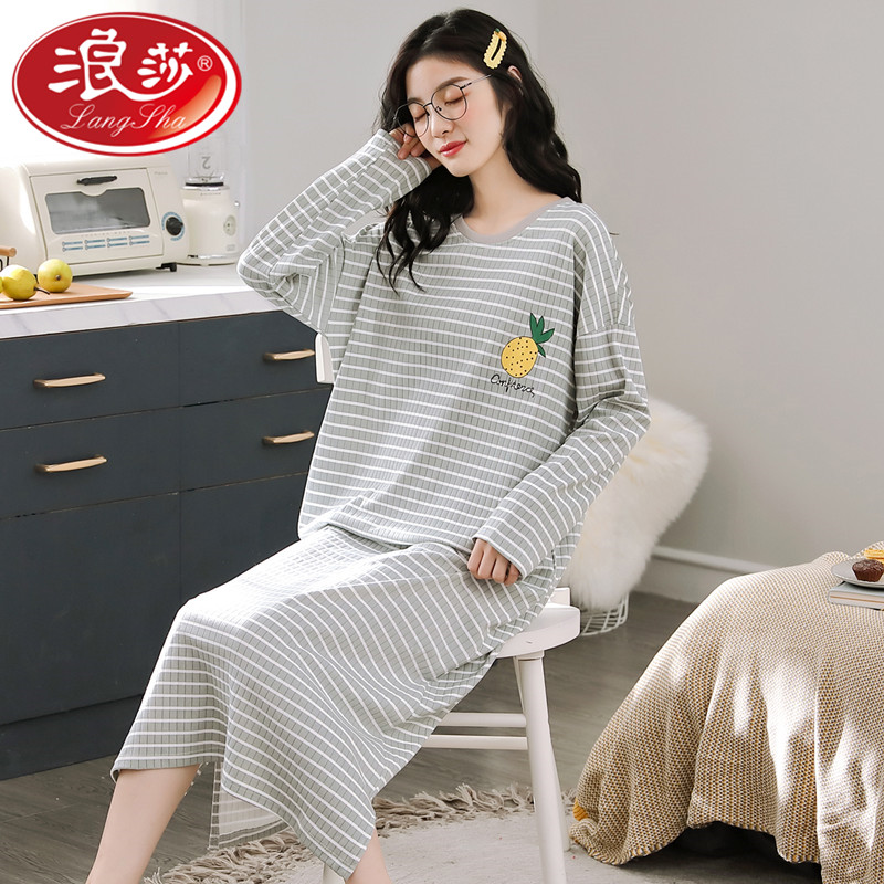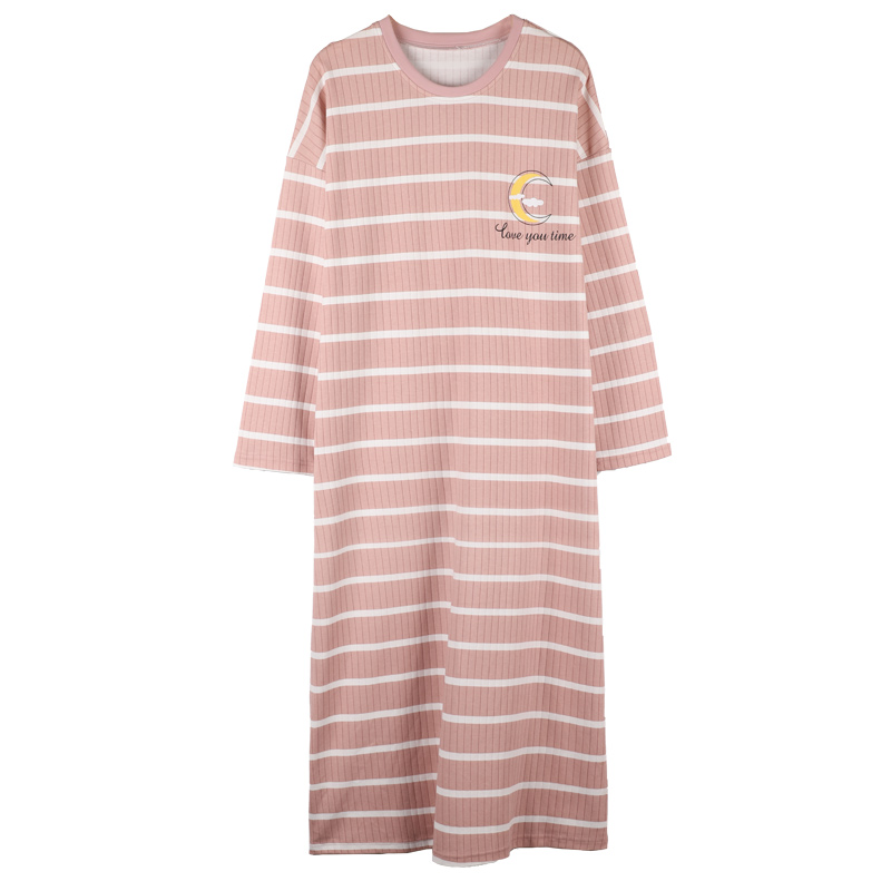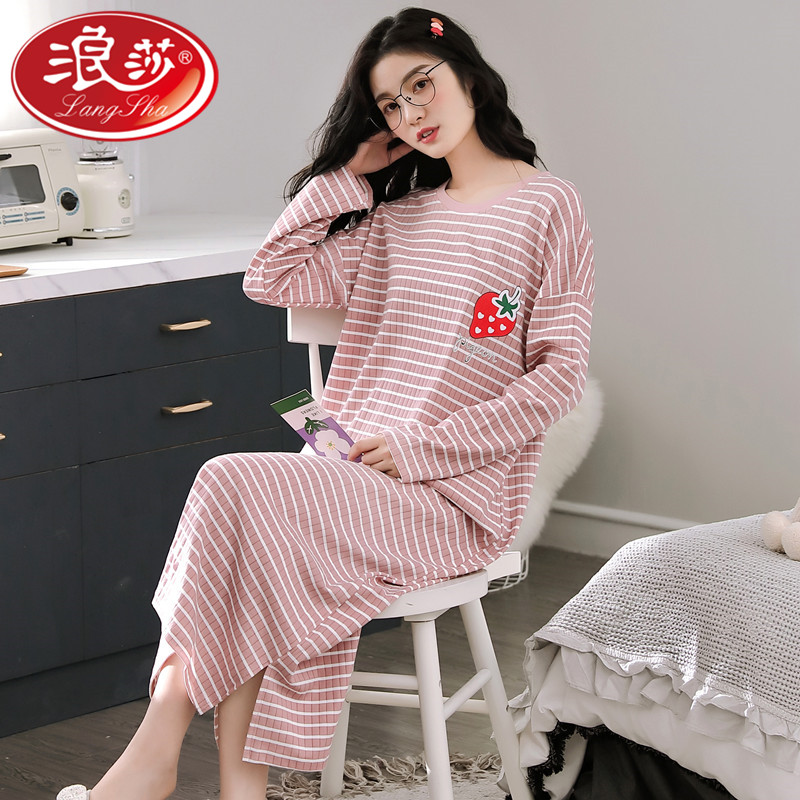 2022 new nightdress women's spring and autumn pure cotton thin section long-sleeved dress autumn and winter striped pajamas women's long section
