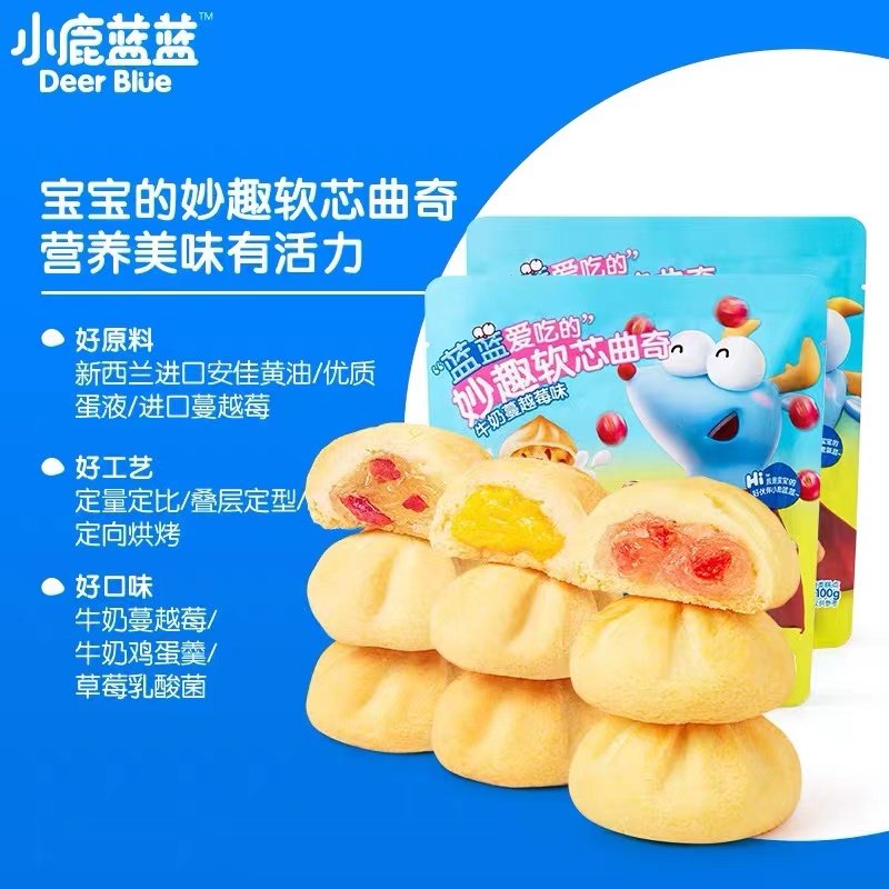 The deer blue and blue fun soft heart cookie 100g baby baby soft chip cake cake pastries independently packaged