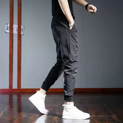 2021 autumn new casual pants men Korean version of the trend Joker foot sports pants black elastic slim ankle-length pants