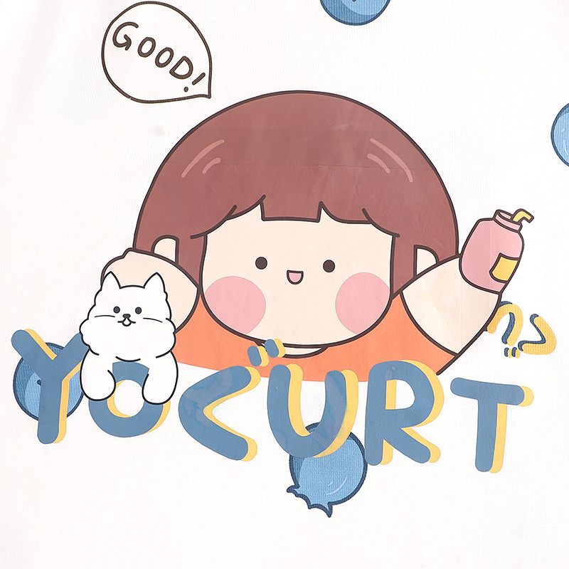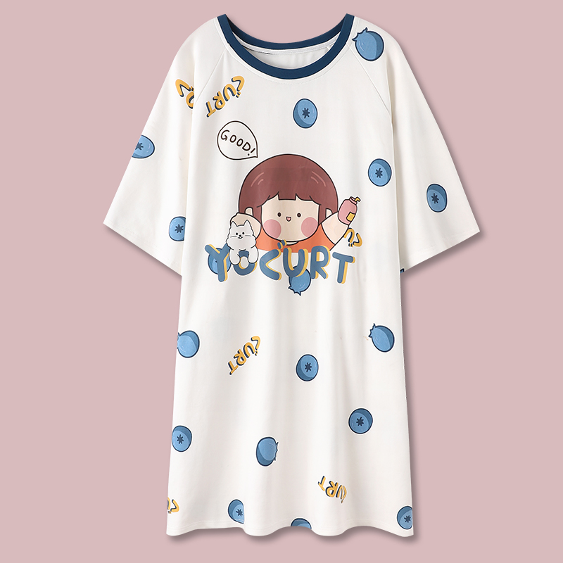 "Fast Le Balls" Day Family Sleeping Dress Girl Pure Cotton Short Sleeve Girl Cartoon Student Home Conserved Loose Summer Pyjamas