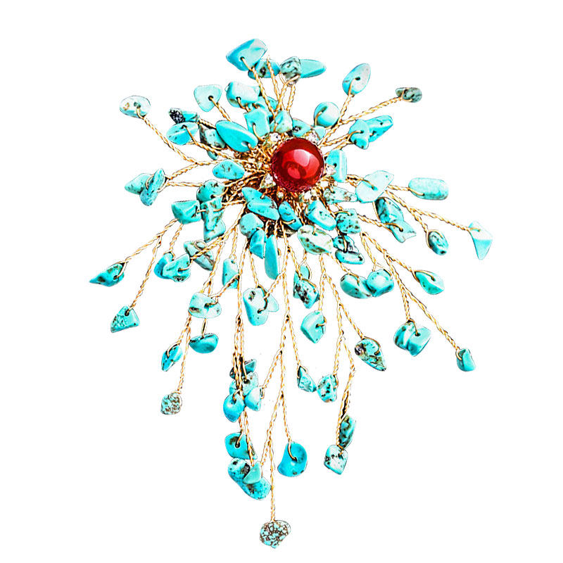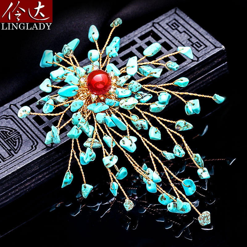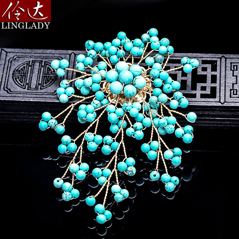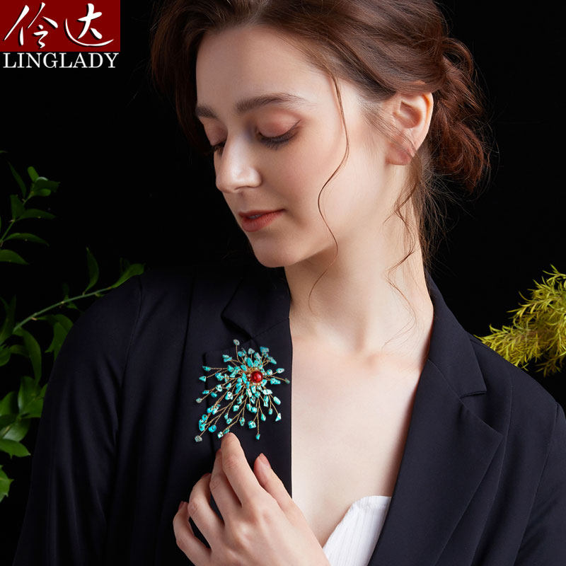 Lingda European and American retro brooches 2021 new imitation turquoise brooches exaggerated summer corsages