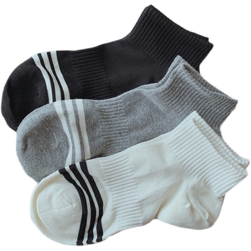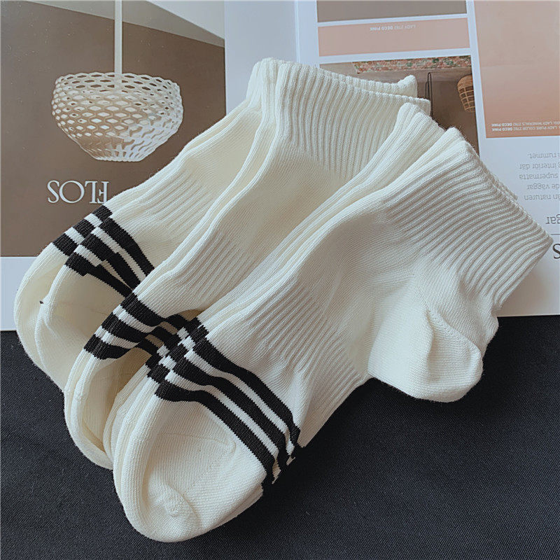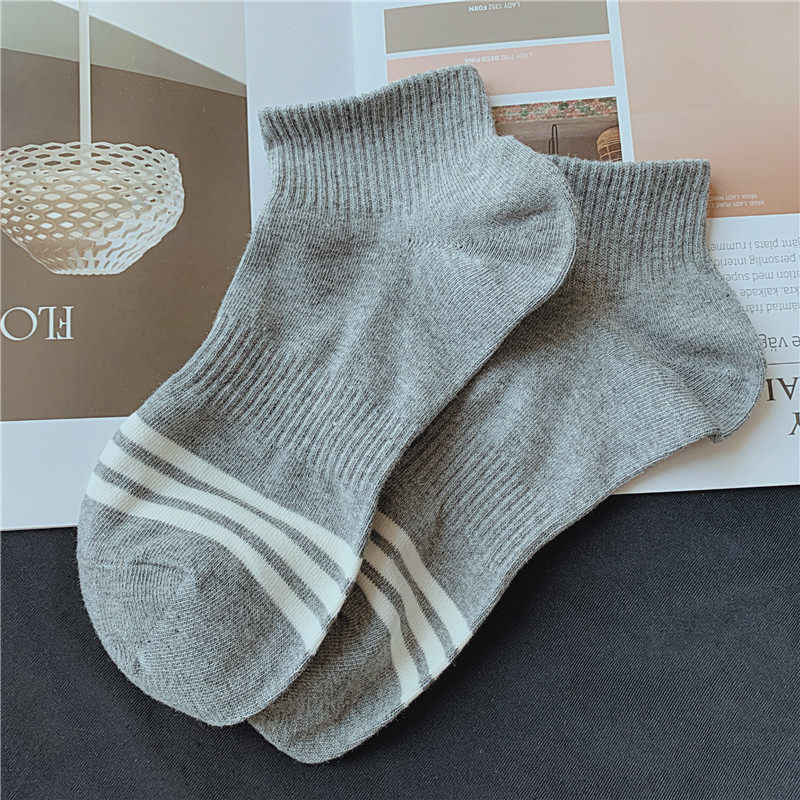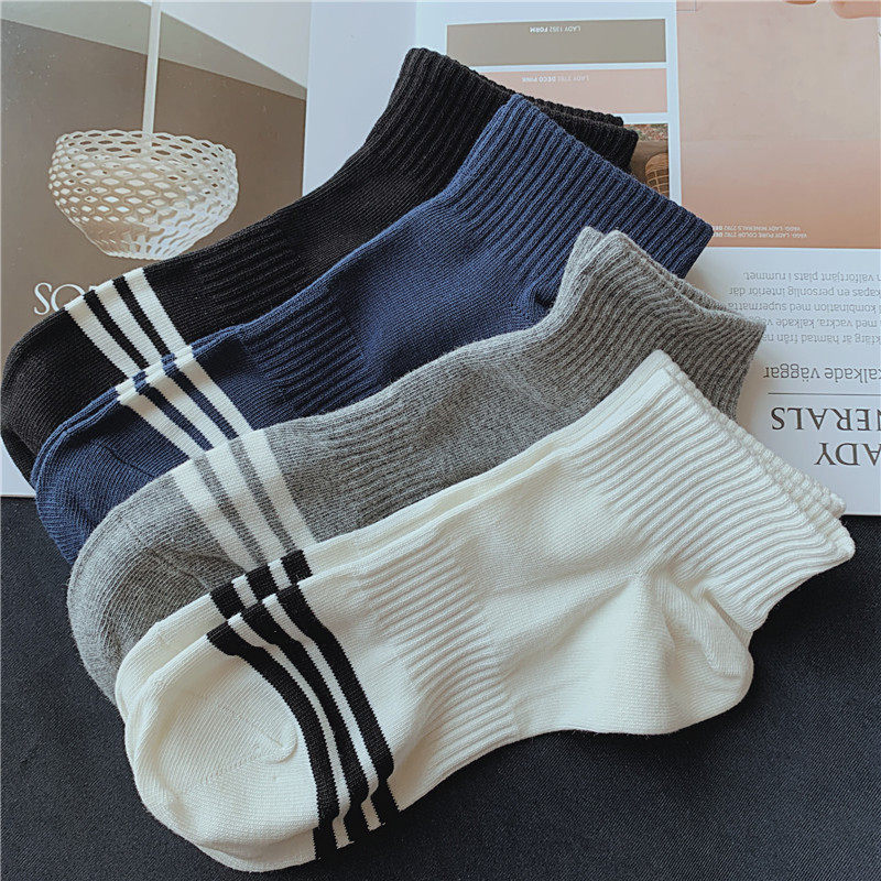 4 pairs of men's short tube socks Japanese ins style striped sports socks cotton sweat-absorbent breathable invisible socks white socks men
