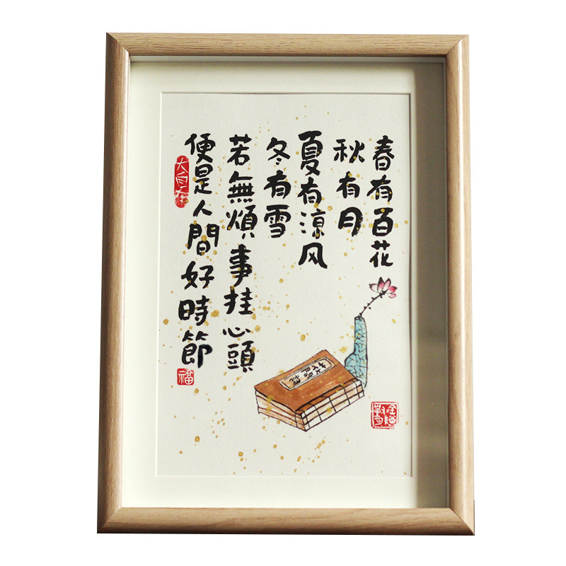 Spring has hundreds of flowers, autumn has moon, poetry, handwriting, calligraphy, calligraphy, painting, hanging painting, painting, Chinese-style creative painting and calligraphy