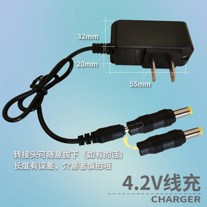 3 7 ~ 4 2V charger (plus 5 5 adapter) 3 7-4 2V charger (small head) seat charging 4 2V USB wire charge 4 2V USB wire (fit