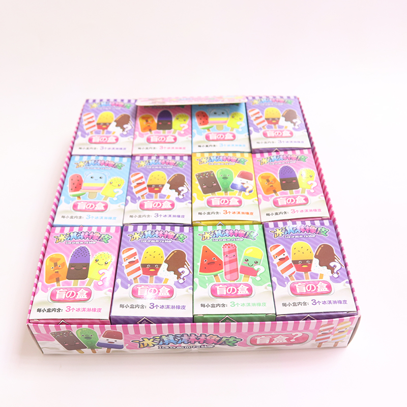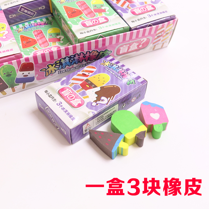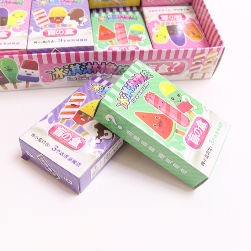 1 Yuan 24 Boxes Ice Cream Erasers Erasable Elementary School Kids Stationery Blind Box Toy School Neighborhood Elementary School Kids Reward Gift