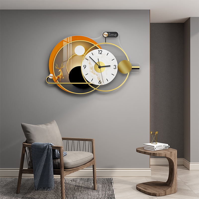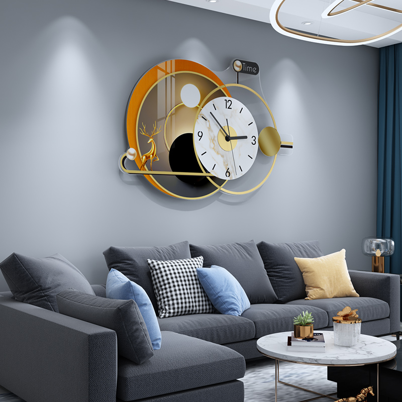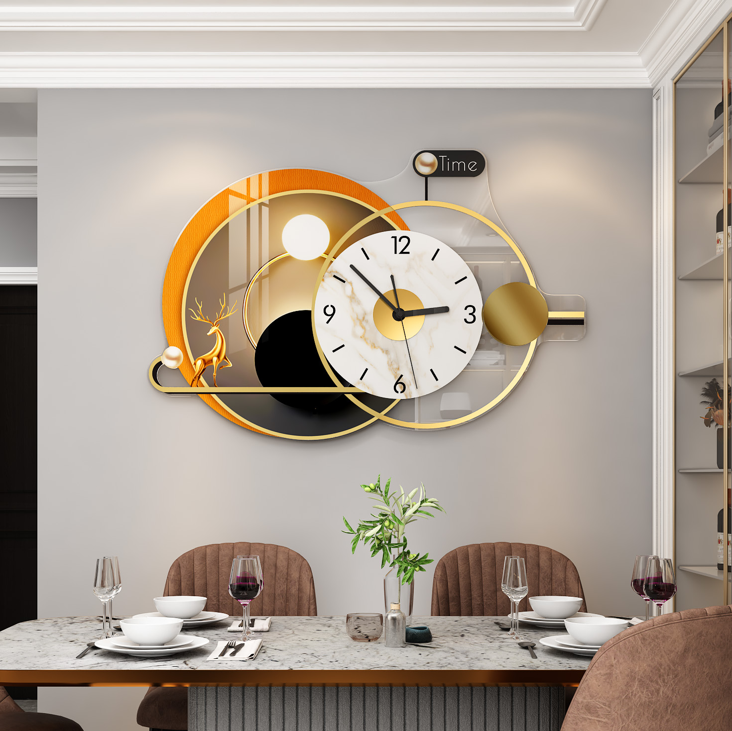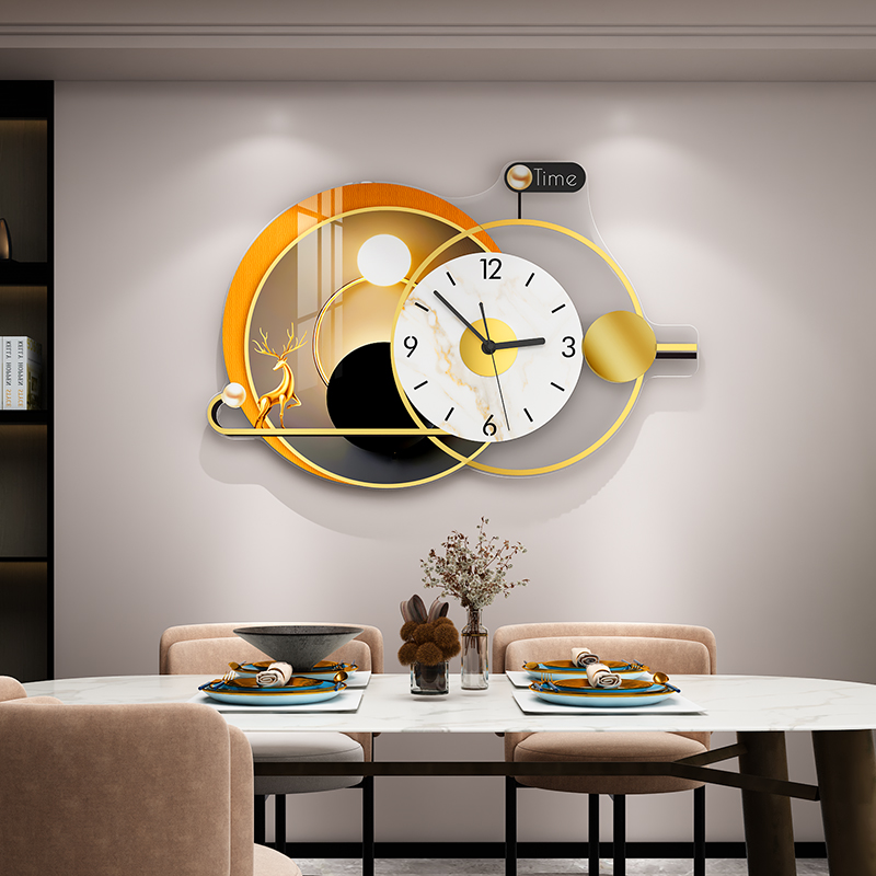 Net Red Sofa Background Wall Decoration Painting Wall Hanging Painting Light Lavish Living Room Modern Minima Dining Hall Atmospheric Clock Mural Painting