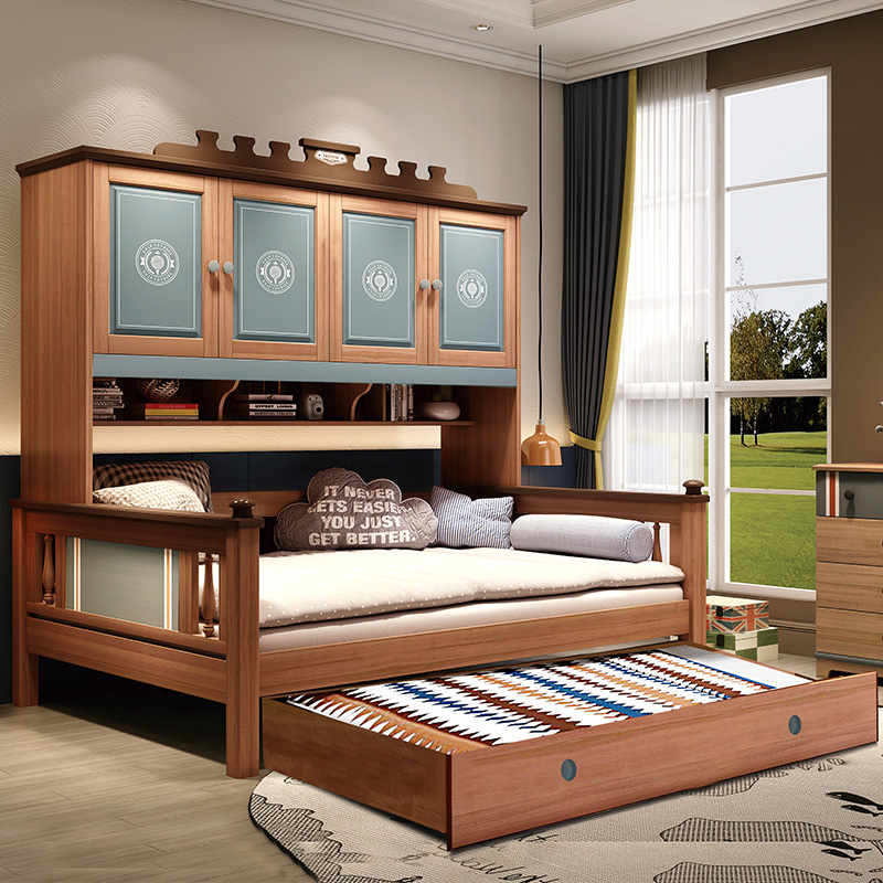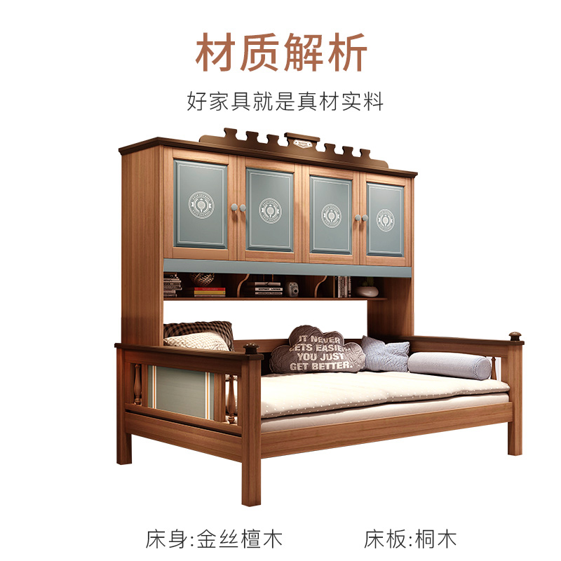 All solid wood children's bed boy with large locker multi-functional gold silk sandalwood wardrobe bed one small apartment customization