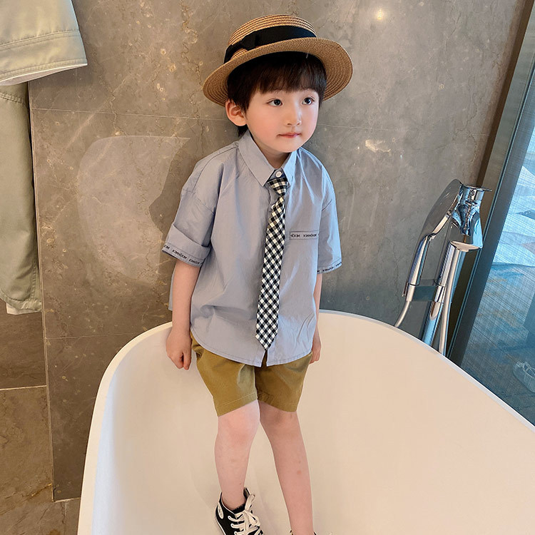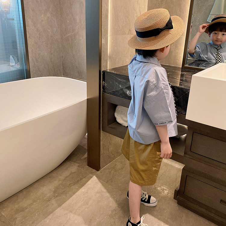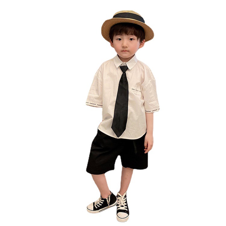 Children's white shirt short-sleeved boys 2021 trendy summer shirt thin section summer white male treasure cotton half-sleeved