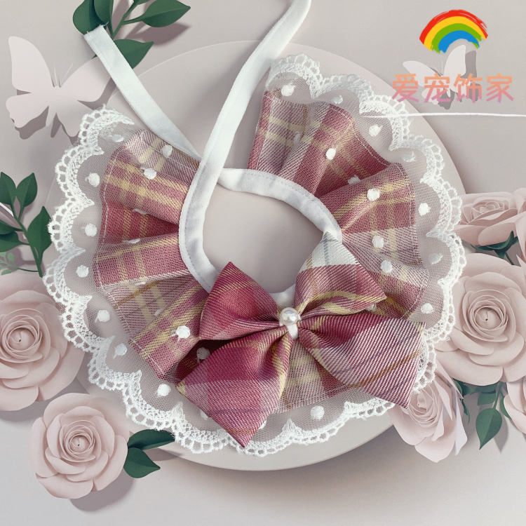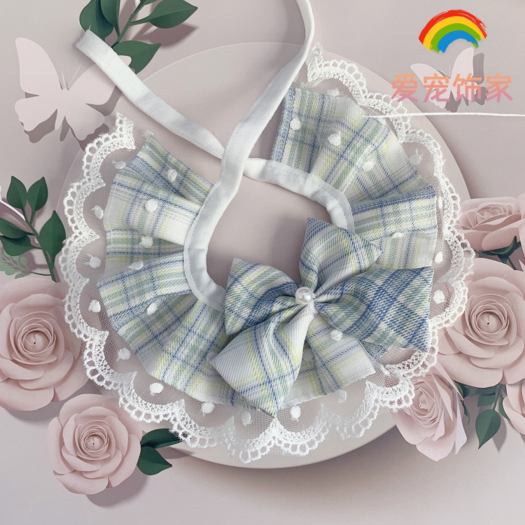 JK wind cat than bear plaid collar Lace mesh lace Drool towel Muppet Teddy dog pet collar spring and summer