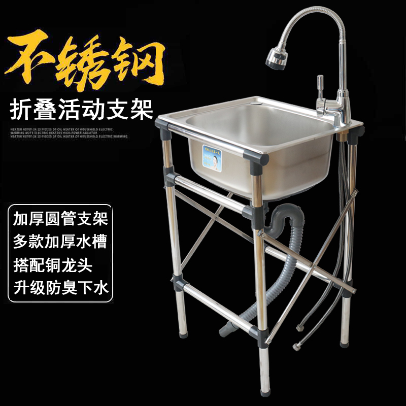 Kitchen Stainless Steel Sink Single Sink With Bracket Thickened Wire Drawing Wash Basin Dishwashing Basin Pool Single Sink Easy Shelf