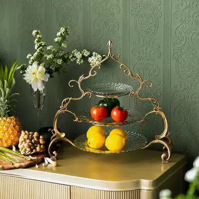 Harvest cottage high-end light luxury brass multi-layer fruit plate European home living room table dessert table ornaments fruit plate