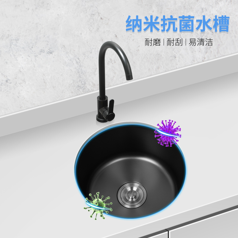 Black nano-round tank stainless steel round sink single-slot bar counter kitchen sink balcony mini under-counter trumpet