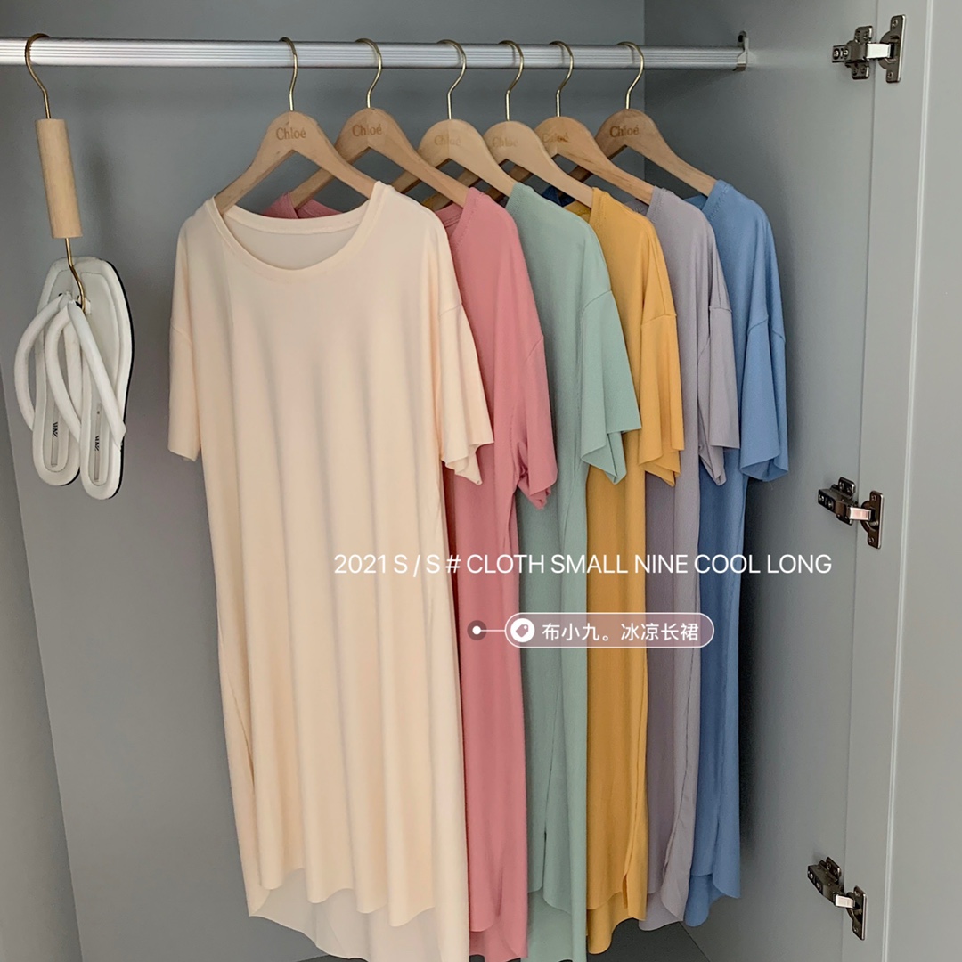 Ice cold long dress Ice Sleeping dress Summer medium Long version Leisure home Lazy Foreign Dress can be worn outside