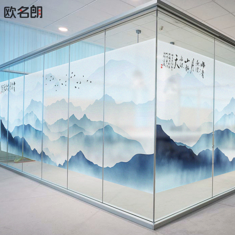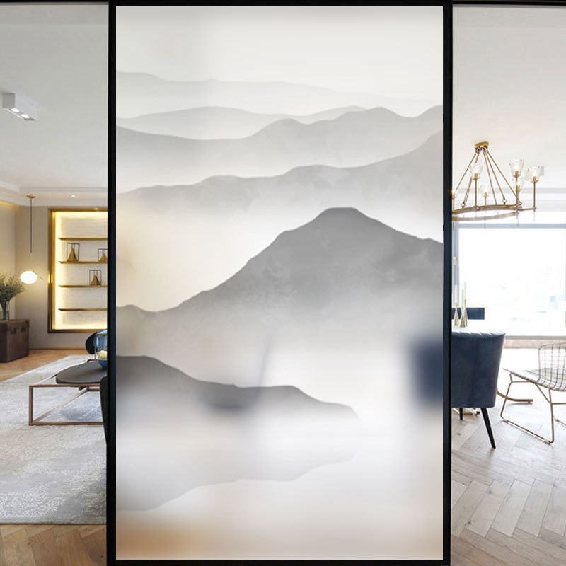 New Chinese Shading Landscape Painting Windows Glass Stickers Sun Protection Custom Bathroom Balcony Pull Doors And Windows Flower Paper Cling Film