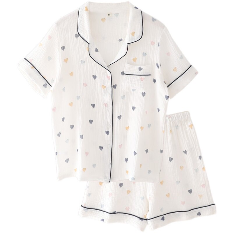 ins thin Japanese style simple love sweet cotton gauze pajamas women's summer loose Korean version short-sleeved home service set