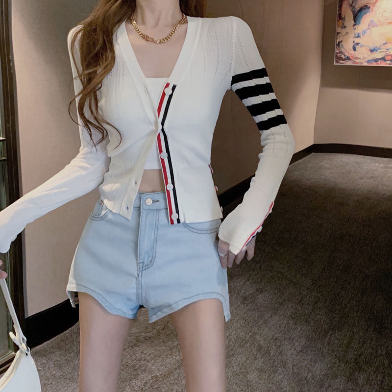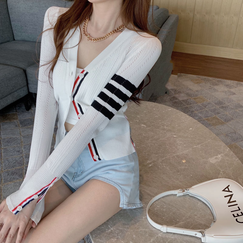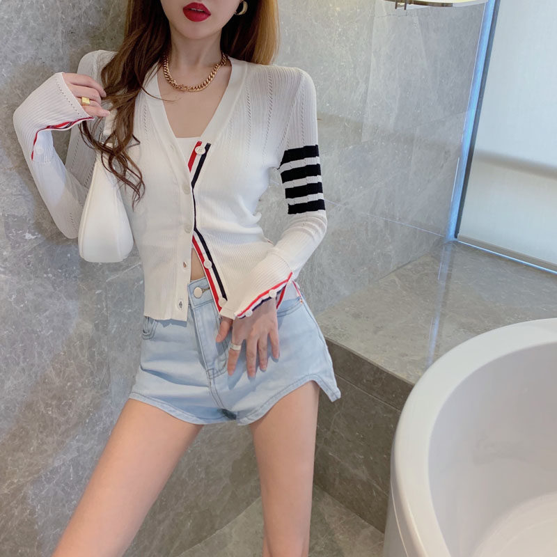 2022 Fall Slim-knit cardiovert cardiovert woman TB white display slim short and breathable sunscreen jacket blouses