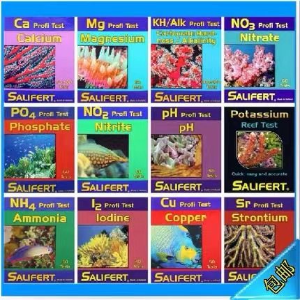 Netherlands Salifa Sali method test reagent NO3 organic matter NO2 potassium pH calcium magnesium KH PO4 iodine copper ammonium strontium silicon boron