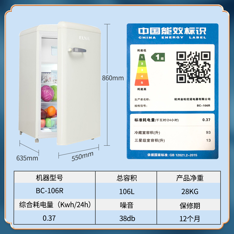 Retro fashion single door white red refrigerator freezer Office apartment Home mini small apartment refrigerator