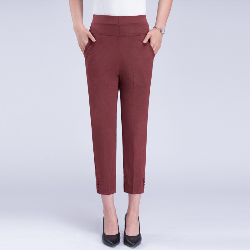 Mother summer fit pants elastic ice silk 80% Pants Summer Thin middle aged large size loose casual 90% pants