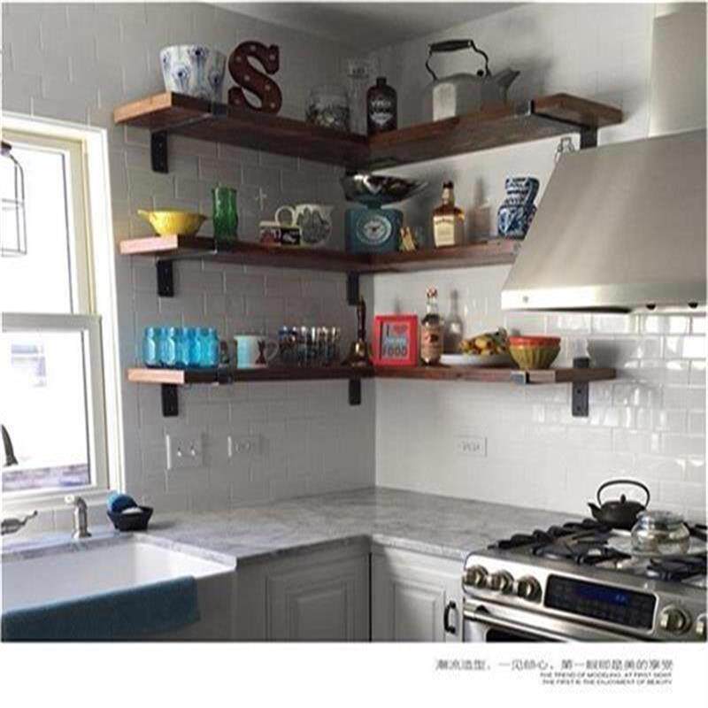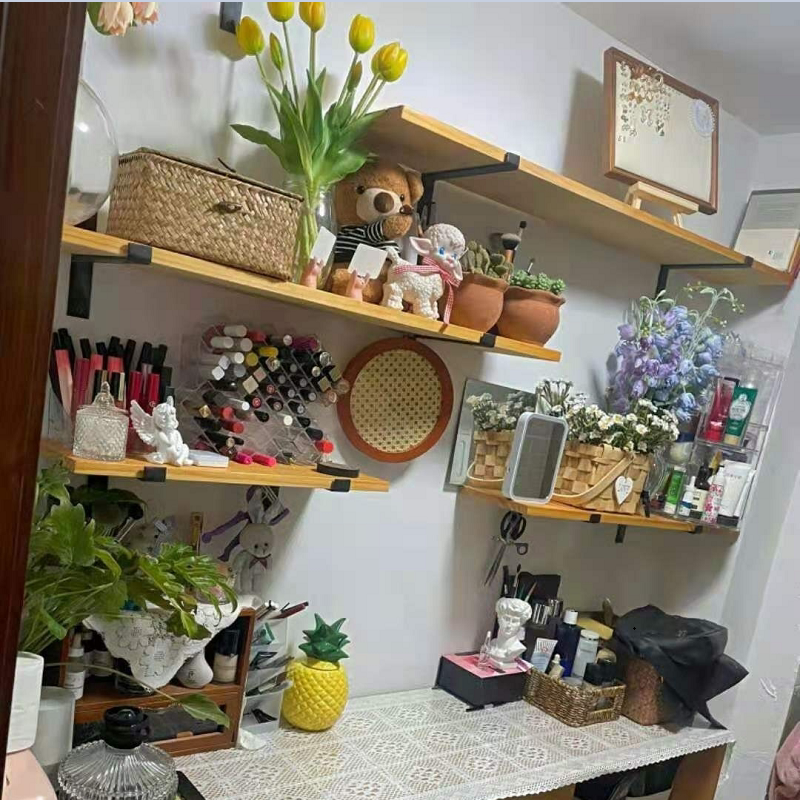 Nordic wall solid wood partition wall hanging shelf shelves parlor kitchen creative decoration shelves