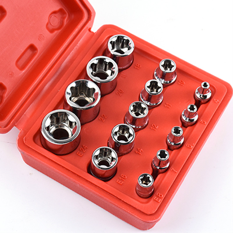 E-type sleeve set 6-angle e-type plum-shaped sleeve auto repair special tools 14-piece hexagonal flower-shaped sleeve combination