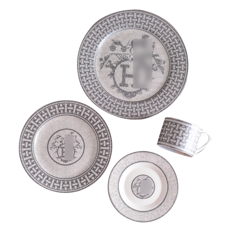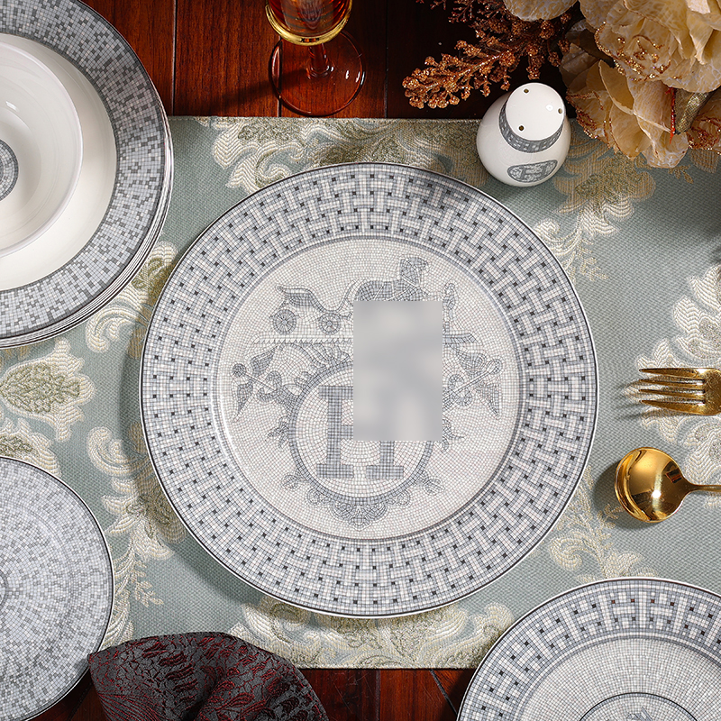 European-style luxury H home 58-head ceramic western tableware 15-head coffee set silver mosaic bone china tableware plate
