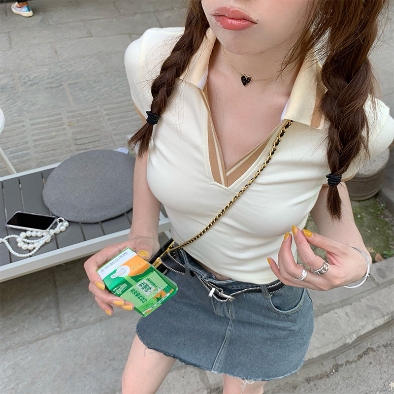 DoggyQin simple and charming polo summer new thin short-sleeved short design polo shirt women