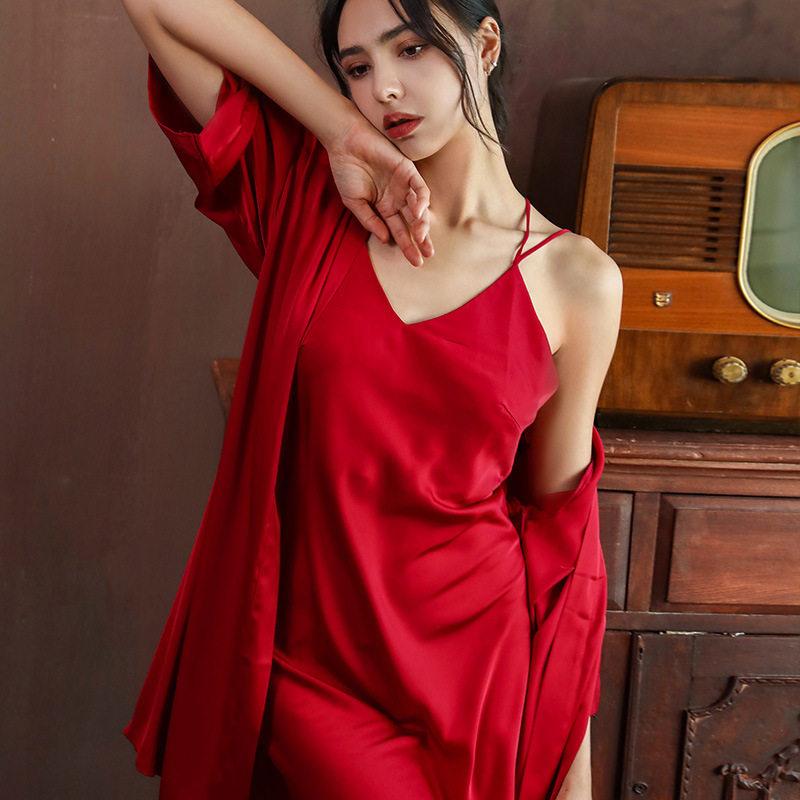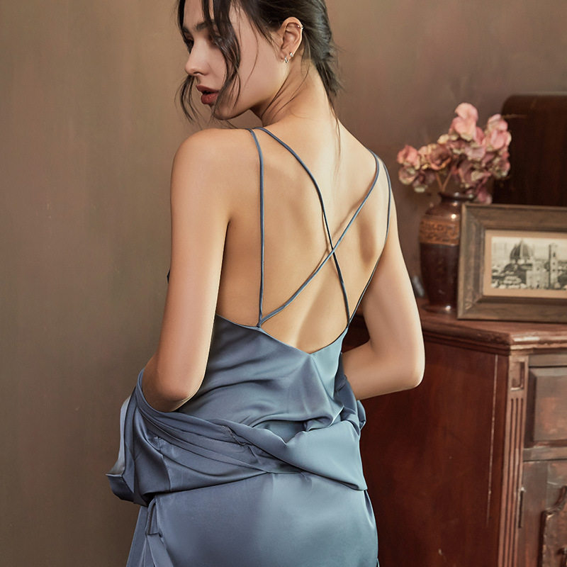 Sexy Sleepwear Woman Summer Pure Color Silk Harness Sleeping Dress Lady Dew-Back Cross Spice Seductive Home Clothing Thin